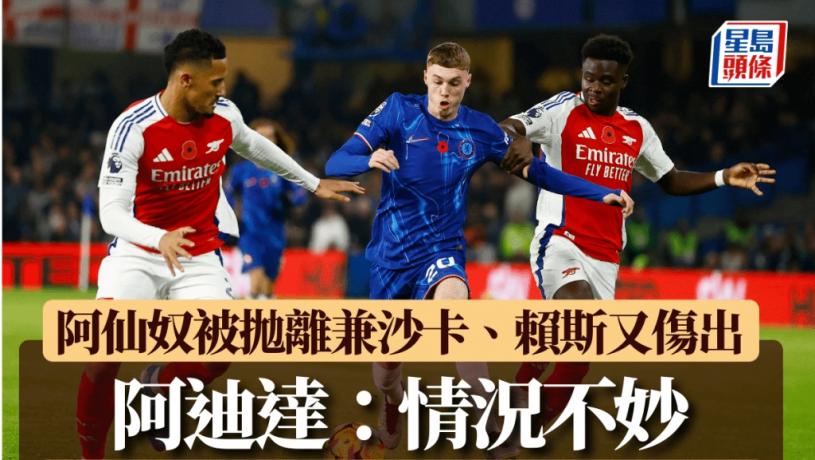 周日英超,阿仙奴作客遭車路士逼和1:1。賽後,2隊同得19分排第3和第4,但已落後榜首利物浦9分,而阿仙奴更有2大球星布卡約沙卡和迪格蘭賴斯傷出,賽後領隊阿迪達直言估計2人傷情不妙,並指傷兵問題嚴重影響成績。