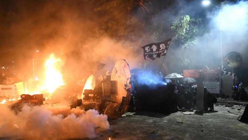 直至下午3時許,聚集人士身穿黑色上衣、戴口罩或防毒面具遮掩容貌,又使用雨傘作掩護,向警方防線朝2號橋方向推進,期間投擲大量汽油彈,燒著警員制服及盾牌。警方遂發射催淚彈及進行驅散行動,期間拘捕5名人士,包括本案的4名被告及一名女子。