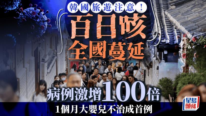 近期前往南韓旅遊的市民宜加倍注意,據當地媒體報道,南韓一名出生不足2個月的嬰兒患百日咳身亡,是該國首宗案例,而百日咳今年在全國範圍蔓延,病例由去年292宗增至今年超過3萬宗,是去年的100倍。雖然百日咳主要對兒童尤其6個月以下嬰幼兒威脅最大,但11至18歲青少年亦容易中招。