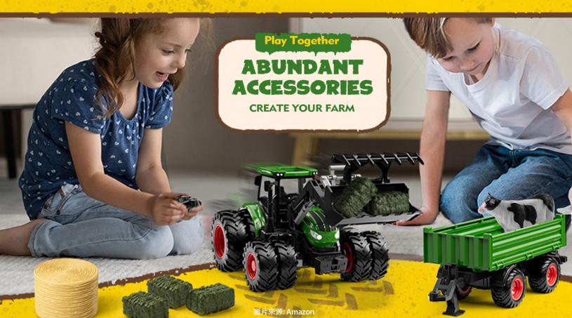 Uarzt 遙控拖拉機玩具,升級版的金屬拖拉機頭、8 個輪子設計,不管是地毯、沙地還是崎嶇地形都能穩穩開,超真實的農場體驗。還配有各種農場配件,像牛、羊、乾草捆,讓孩子一秒擁有自己的小農場!前裝載機和可傾卸拖車更是趣味滿滿,玩耍過程中無形中培養孩子的想像力和探索心。2.4GHz 遙控器還能多人同時玩,你可以和小朋友一起來一場拖拉機「農場大作戰」。
