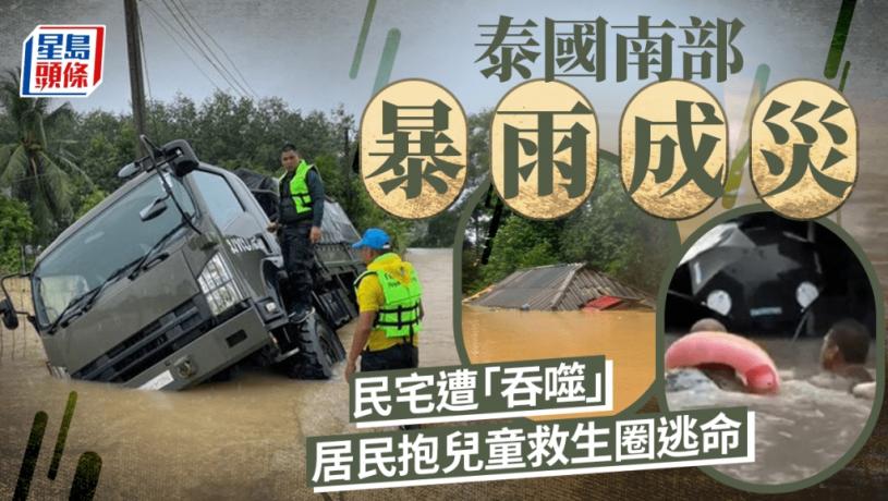 泰國南部近日暴雨成災,靠近泰國和馬來西亞邊境的宋卡府、也拉府、北大年府和陶公府等災情最為嚴重,甚至出現民眾拿著小孩的救生圈,在水中逃生情況。泰國政府已設置救災中心和熱線,派出逾500士兵及志願人員到災區,協助分發救濟物資並疏散居民,警方也準備好加入撤離災民的行列,以防有人趁災偷竊。受到水災影響,合艾至也拉府和陶公府的列車服務已經暫停。