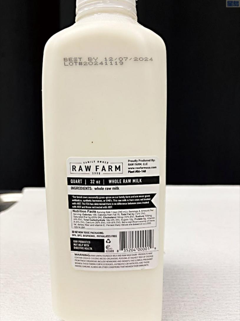 應州政府的要求,Raw Farm發布了第二次生奶召回行動,其批次代碼為20241119,最佳保質期為12月7日。