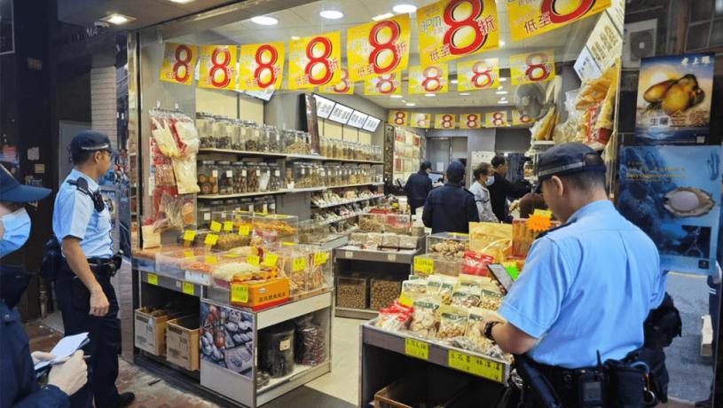 警方聯同食環署人員到中區海味街一帶向商戶發出通知,提醒他們切勿在公眾地方或馬路擺放貨物或物品。中區警區FB