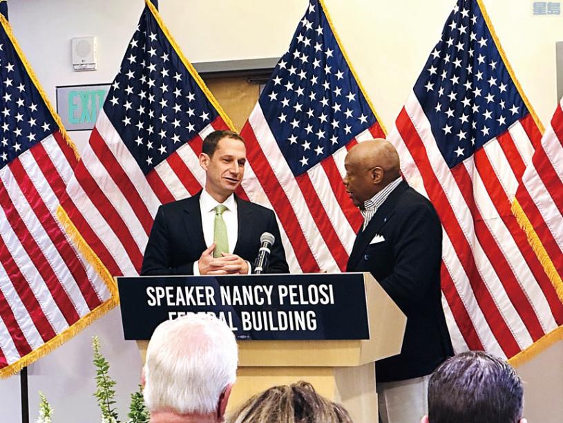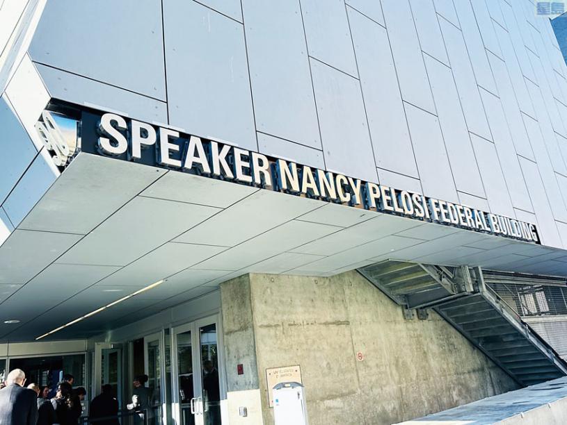 三藩市7街的18層聯邦大樓於周一(2日)正式易名為「普洛西議長聯邦大樓」(Speaker Nancy Pelosi Federal Building)。聯邦眾議院前議長普洛西周一上午10時與丈夫保羅(Paul Pelosi)共同出席新大樓標誌揭牌儀式。