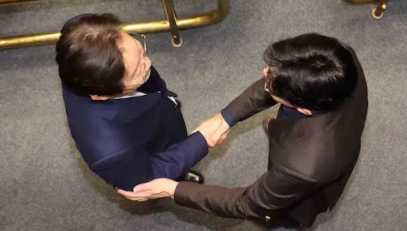 當地時間12月4日凌晨,南韓國會舉行緊急全體會議,就「要求解除緊急戒嚴令」進行投票。南韓《朝鮮日報》4日報道稱,決議通過後,參與表決的朝野議員一致鼓掌歡呼,南韓朝野兩大政黨黨魁在現場握手交談的畫面被拍攝下來。