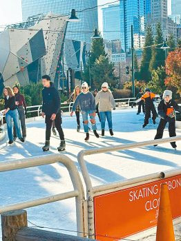 麥姬戴利紀念公園的彩虹溜冰場免費讓所有喜愛溜冰的民眾在冰上飛翔。 梁敏育攝
