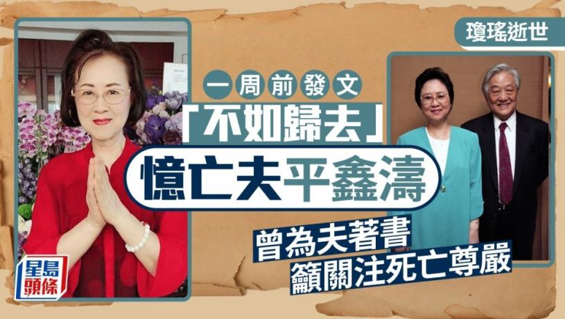 瓊瑤2017年公開遺書,提倡「尊嚴死」,原來是被罹患血管型失智症臥病在床的平鑫濤影響,不希望人生最後一段時光也過得如此痛苦。