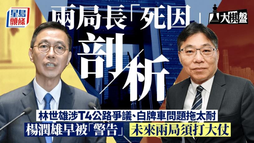 至於林世雄,雖然無被特首公開提醒,但上任兩年來確實表現麻麻,包括興建沙田T4公路申請近70億撥款引發爭議、處理白牌車問題拖得太耐,政府內部亦非沒有提點過。官場中人指,政府並非不肯定二人的努力和工作,但未來這兩個政策局要「打大仗」,文體旅局有體育園開幕、全運會及振興旅遊等工作,運物局則肩負提升本港航運中心地位、港口競爭力等重責,這也是中央看重的範疇,需要更具魄力人選推動。