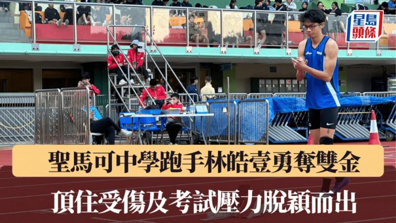 今次學界D3A4組田徑賽,聖馬可中學林皓臺出戰男子A Grade 200米及400米跑,分別以22秒82及51秒6奪冠,成為雙金得主。原來,林皓壹在比賽一個月前不幸甩骹,而且決賽日天氣寒冷和狀態不佳,平常還要應付考試壓力,多重負擔下令他不能刷新自己400米跑個人最佳成績(Personal best)50秒03。