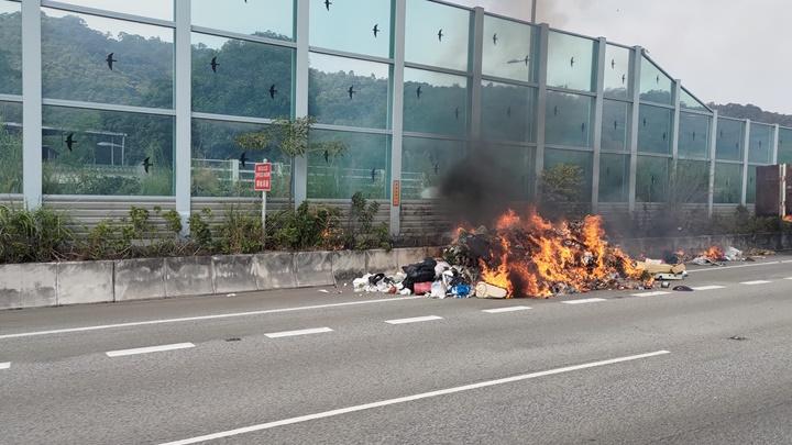 雜物越燒越猛。fb:馬路的事 (即時交通資訊台)