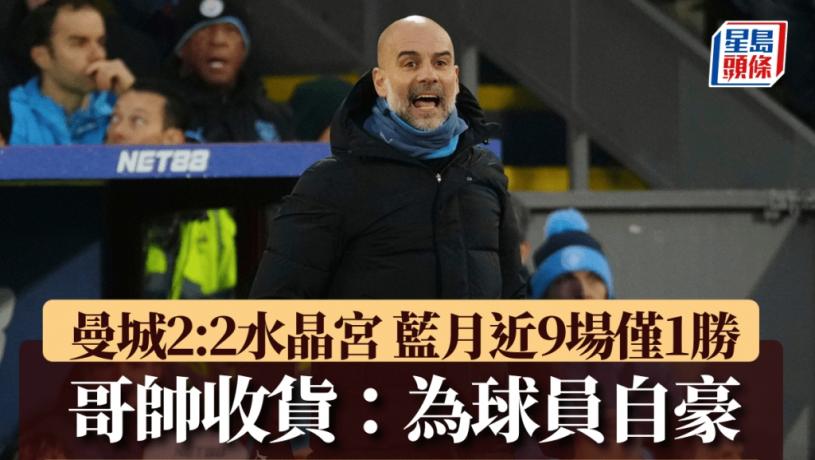 連同今場,藍月各賽事近9場只得1勝2和6負,15輪英超後只得27分創領隊哥迪奧拿執教曼城以來同期最低。不過,球隊兩度落後兼完場前有歷高利維斯被逐打少個下最終仍搶回1分,哥帥滿意道:「作客水晶宮並不易,取得1分也很滿意。我為球員的拼搏精神感到驕傲,他們在困難的條件下兩度追平。總括而言,我們努力奮鬥了,我對場上的表現感到非常高興。我們今季必須在每場比賽都盡力求存,盡力贏下比賽並向前邁進。」