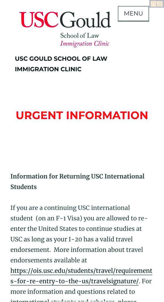 USC Annenberg Media稱,新政府過渡將帶來簽證處理與政策的不確定性,校方建議學生時刻關注官方資訊,並鼓勵國際學生隨身攜帶重要證件,並確保在重新入境美國前,所有證件已經更新。如果遇到困難,學生可以聯繫USC國際服務辦公室,或訪問學校的移民診所網站https://uscimmigrationclinic.org/urgent-information