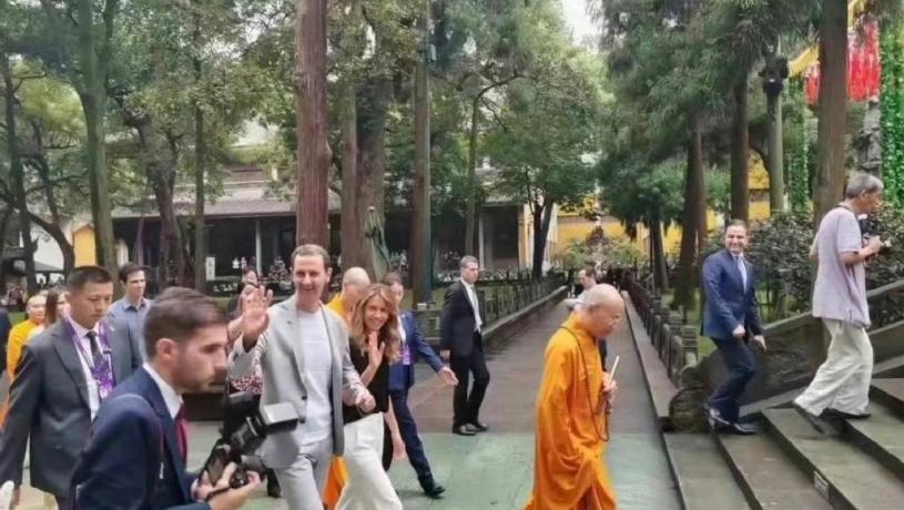 巴沙爾去年9月與夫人飛抵中國訪華,並出席亞運會的開幕禮,期間巴沙爾與夫人在9月22日,參觀當地名剎靈隱寺。