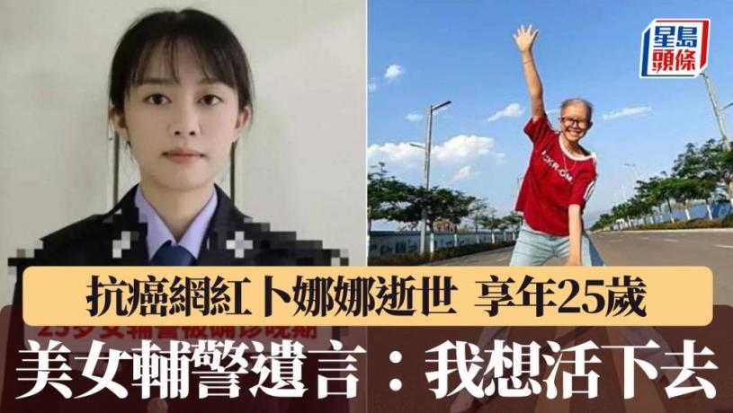 內地有粉絲逾32萬的美女輔警網紅卜娜娜,年前確診癌症橫紋肌肉瘤,堅強抗癌致失明脫髮變光頭,日前終不敵病魔逝世,年僅25歲。她生前曾留言「我想活下去」,坎坷一生惹哭無數網民。