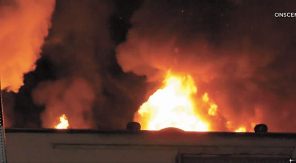 亞馬遜一個退貨倉儲發生大火。NBCLA新聞畫面