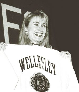 希拉莉1990年代作為第一夫人回母校訪問。 檔案圖片
