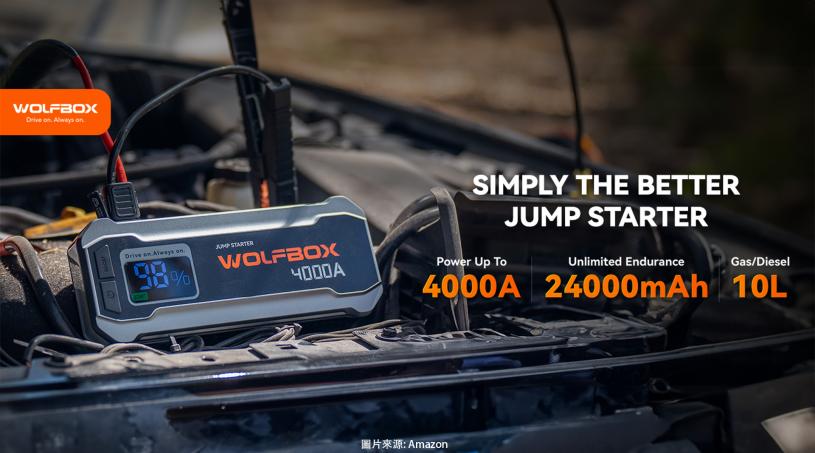 WOLFBOX 4000A 緊急電源啟動器擁有24000mAh 的大容量電池和 4000A 啟動電流,輕鬆支援10升汽油或柴油車引擎啟動,不管是轎車還是卡車,都能穩穩搞定。高清 LCD 顯示器讓操作狀態一目了然。它不僅是啟動神器,還是移動電源!65W USB-C 快速充電,能給手機、平板、筆電快速回血,露營或長途旅行超貼心。內建的 LED 照明功能,有 SOS 和頻閃模式,緊急時刻隨時備用。IP64 的防護等級再加上 10 種安全防護功能,無論是寒冷的冬天還是炎熱的夏天,都能安心使用。這款多功能應急裝置,真的讓出行更安心!