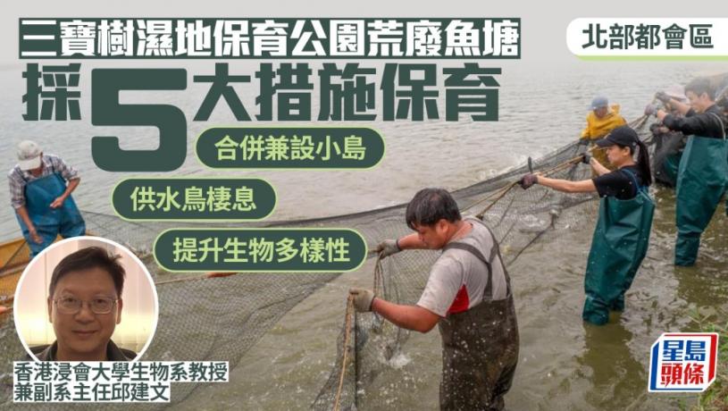 【北都/三寶樹濕地保育公園/魚塘/邱建文】北部都會區是本港未來發展重心,政府在開發新區同時亦不忘保育。身兼「環境監察小組」成員的香港浸會大學生物系教授兼副系主任邱建文向《星島》指,本地環團組織有豐富的濕地管理經驗,相信當局會採納環團建議,在三寶樹濕地保育公園內進行保育工作,包括將零碎的小魚塘整合成大魚塘;在魚塘中央設小島,供水鳥棲息、覓食等,並冀通過主動管理恢復荒廢魚塘的生態價值。當局亦重申,填塘工程不會在保育措施推行前進行。另因應外來入侵物種「海桑」正嚴重威脅后海灣紅樹林生態,邱透露政府已與內地部門協調統籌,冀能攜手清除「海桑」。