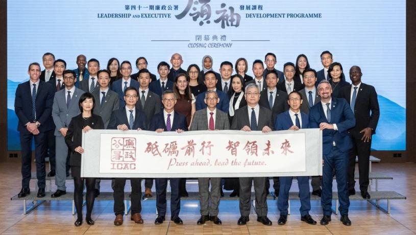 廉政專員胡英明在領袖課程結業禮上表示,課程由高級政府官員、廉署資深反貪人員和不同領域專家主講,學員從交流中深化領導能力。