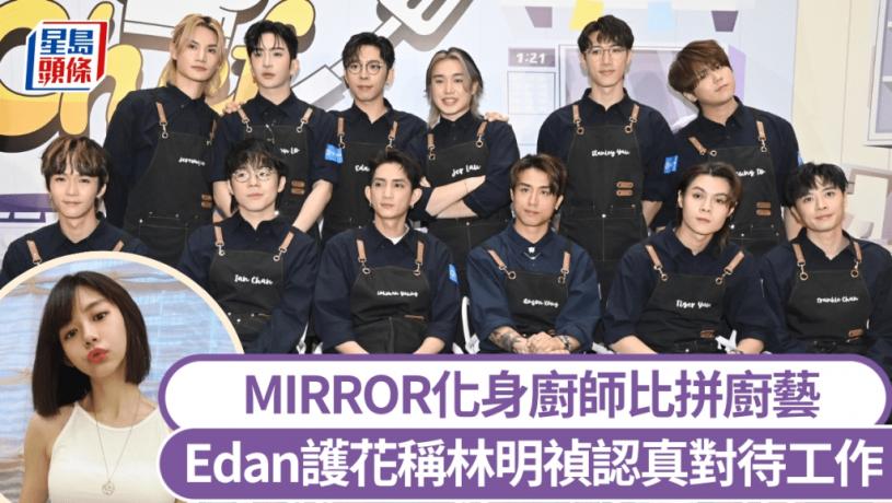 男團MIRROR12子今日(11日)於Apm出席Viu TV新節目《MIRROR Chef》記者會,現場商場迫滿「鏡粉(粉絲暱稱)」支持偶像。12子在節目上化身成廚師進行比拼廚藝。盧瀚霆(Anson Lo)表示自己最撚手煮西蘭花炒雞柳,柳應廷(Jer)指在該節目學識煮小炒王,原來好多步驟先做到。姜濤則謂多位成員中最可靠下廚是節目組請來的廚師,最後變成由他們煮菜式,又自爆煮麵都試過煮燶麵,但也覺得好味。邱士縉(Stanley)指隊員下廚也是半斤八兩,所以買外賣最適合。AK表示在節目學識嘴動指揮人工作,日後可以指揮父母下廚。自認打雜的李駿傑(Jeremy)笑言自己不懂下廚,所以幫手執頭執尾。談到以食物形容MIRROR,Lokman笑言滿漢全席,各有不同味道。