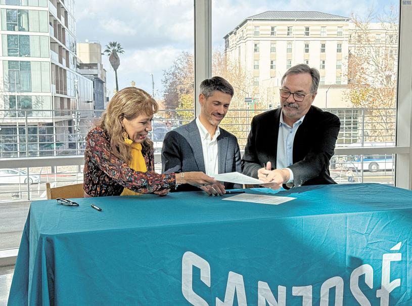 聖荷西市長馬漢(Matt Mahan)12日和聖荷西加州州立大學(SJSU)校長Cynthia Teniente-Matson在市府宣布,與NVIDIA企業行銷與開發項目副總裁Greg Estes簽署合作備忘錄,三方將開展以AI為重點的突破性合作,培養面向未來的勞動力隊伍。