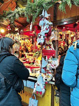 人們在德國聖誕市集細心的挑選聖誕禮物。 梁敏育攝