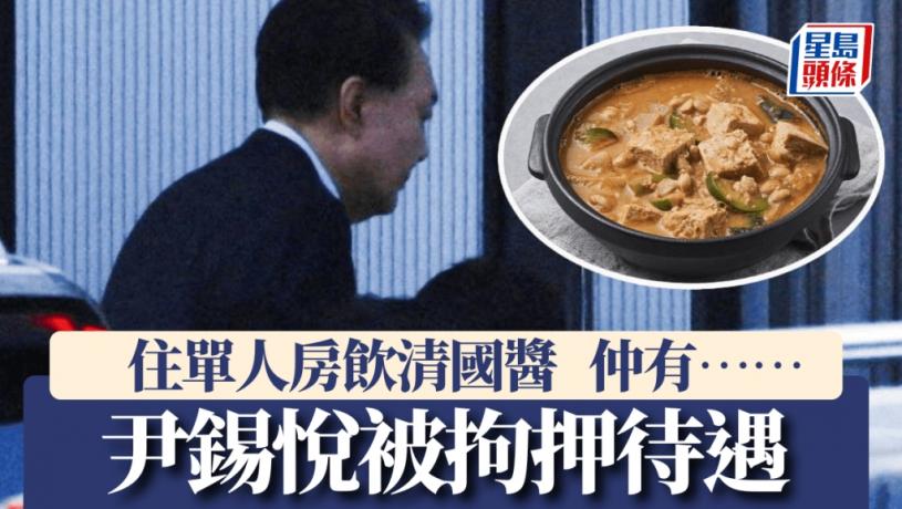 報道說,尹錫悅將會分到一個單人間。首爾拘留所的菜譜顯示,今晚主餐是清國醬,明早主餐是牛肉湯,所用牛肉為美國和澳洲進口。