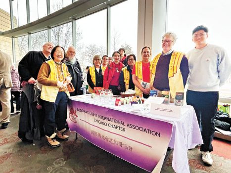 會後,由英文分會會長Lauren Pittelli帶領,設置展示攤位,介紹芝加哥禪淨中心及國際佛光會,推廣佛光小叢書,並以三好胸針結緣,廣邀大眾參加2月1日的「新春敦親睦鄰 社區歡喜日」。