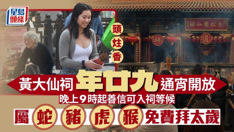 嗇色園指,市民可於年廿九(28日)在黃大仙祠外廟宇廣場及黃大仙廣場排隊,在晚上9時起單向流水式入祠上香,前往三個敬香點上香後離開,不可停留。祠內將實施單向參神路線及人潮管制措施,不設求籤區、跪拜區及供品區。