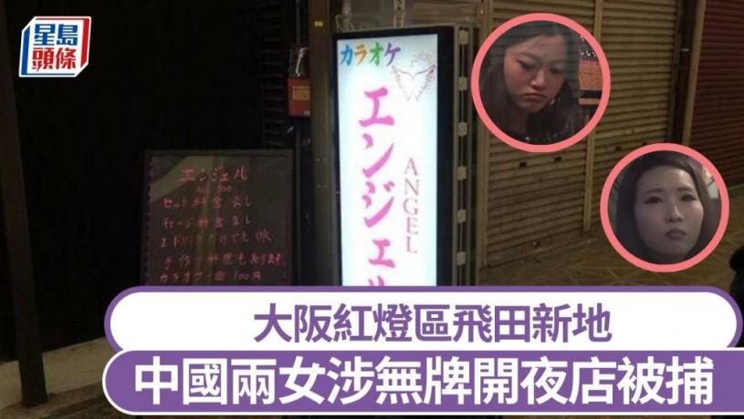 日本警方拘捕兩名中國女子,涉於大阪著名紅燈區飛田新地附近,在沒有牌照下,違規安排女職員在屋酒屋接待客人。