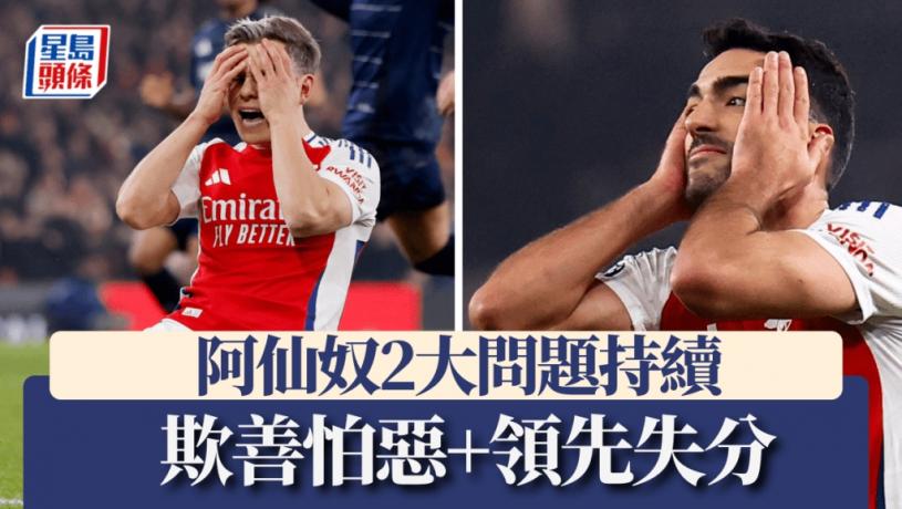 事實上,槍手今場展現的2大問題,由季初至今仍未解決。球隊今季經常欺善怕惡,22輪賽事中有11場面對積分榜上半版的球隊,他們只得2勝7和2負的成績,僅得13分;反觀遇上後10位的球隊時,就豪取10勝1和得到31分。此外,槍手今季經常於領先的情況下葬送好局,連同今仗本季英超曾12次於半場領先,最後錄得7勝5和,對比上季18次換邊前領先最終全勝,相差甚遠。而球隊今季領先之下共失丟了12分,亦是近5年以來最多;還有英超主場領先2球未能全取3分,是阿仙奴自2019年以來首次,之前46次有2球優勢都能夠贏波。