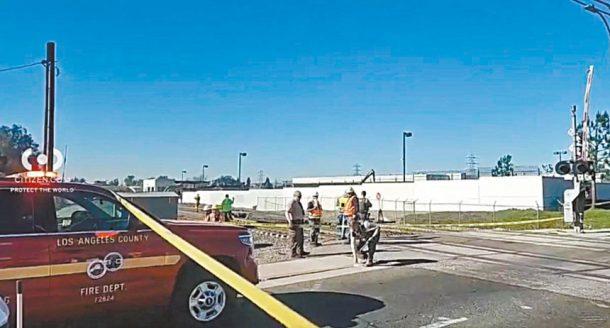 工業市一輛汽車被Metrolink列車撞倒,2死5傷。Citizen App截圖