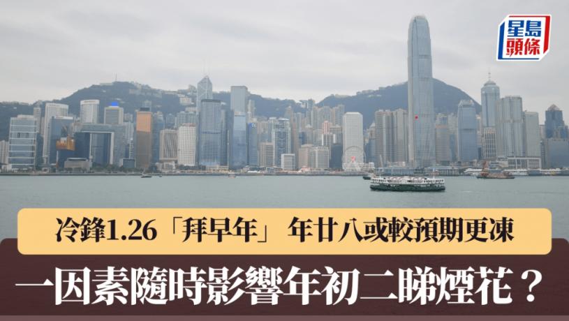 受季候風持續影響,農曆新年假期期間早晚氣溫仍然較低,隨著偏東風帶來較多水汽,預料年初二(30日)及年初三(31日)早晚雲量較多,亦有機會有一兩陣微雨,但相信對年初二晚觀賞煙花的影響不大。天文台又提醒市民在年廿八(27日)轉冷前,提早大掃除。