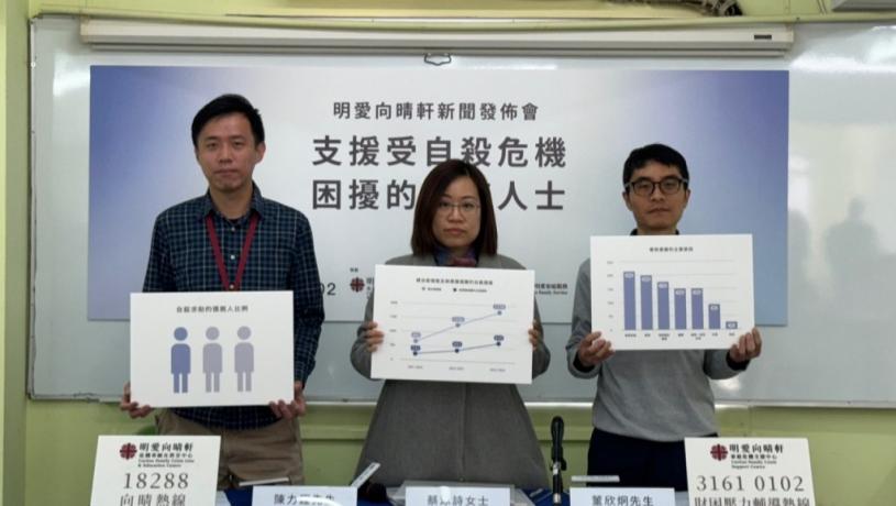 明愛向晴軒公布「支援受自殺危機困擾的債務人士」詳情,綜合2021至2024三個年度,在具自殺風險的求助個案中,受債務困擾的個案每年比例均佔1/3以上,且呈持續上升的趨勢,當中債務人佔8成,以男性為主(60%);債仔家屬佔2成,以女性居多(88%)。