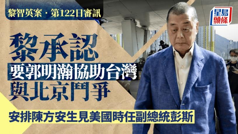 壹傳媒創辦人黎智英與《蘋果日報》三間相關公司涉串謀勾結外國勢力案今踏入第122日審訊,黎智英第30日出庭自辯,控方第4日盤問黎智英。黎智英曾向前美國駐港澳總領事郭明瀚指,蔡英文政府令人非常失望,而黎想找機會讓郭明瀚一方幫助台灣與北京的鬥爭。黎另承認他向《蘋果日報》社長張劍虹及副社長陳沛敏下達編採指示,要求《蘋果日報》把前政務司司長陳方安生與美國時任副總統彭斯會晤的重大新聞做到「最大效果」。陳方安生與彭斯會晤前,亦曾於2019年3月與郭明瀚會晤,討論《逃犯條例》修訂草案。