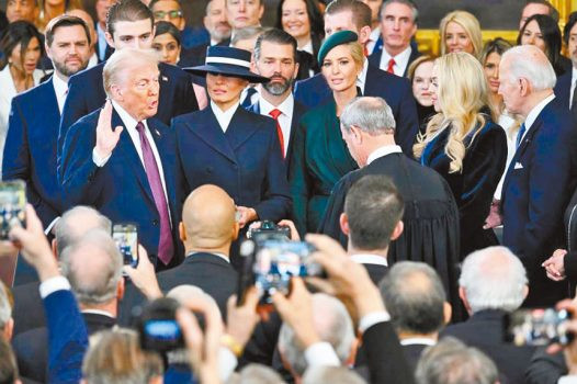 特朗普總統在聯邦最高法院大法官羅伯茲的監誓下,宣誓就職。美聯社