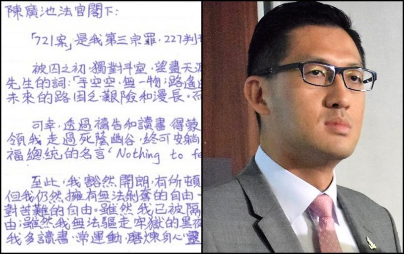 林卓廷由代表大狀呈上由他親撰的陳情信。陳情信全文如下: