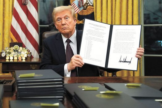 新總統特朗普就職首日簽署多項行政命令,預料總數將超過100項,明顯多於他8年前首次上任時的紀錄。 美聯社