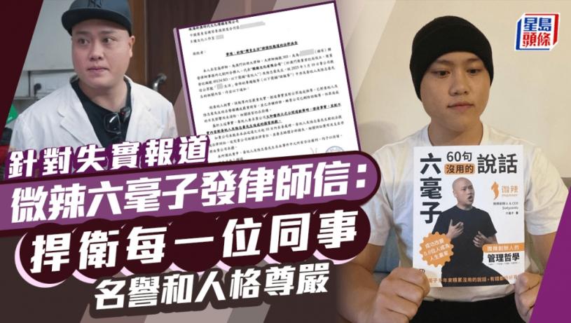 前年7月份發生微辣經理人阿晶(Jane)離世控訴事件,令微辣中人遭圍剿受盡網民責罵,微辣一度暫停營運,而旗下藝人包括豪Dee、霍哥、阿丞等宣布退出微辣。雖然六毫子曾貼出與阿晶的對話圖,圖文並茂解釋自己在她離職後仍保持聯繫,否認欺凌阿晶,或以假帳號詆毀對方,更沒有透過黑社會傷害任何人,但外界仍然有唔少反對及質疑聲音。面對排山倒海的惡意攻擊,昨日微辣委託律師發出律師信,針對一些嚴重失實報導,要求在10日內公開道歉聲明及澄清事實,以捍衛微辣同事名譽及人格尊嚴。