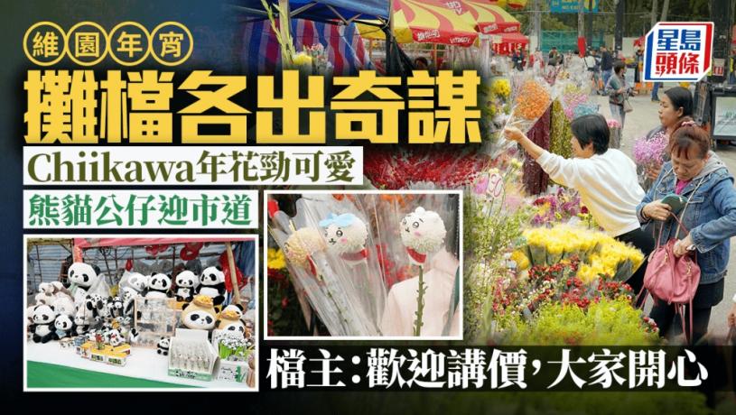 在維園擺檔10年的花檔老闆李小姐認為今年生意不錯,下午人流應該會更多,希望生意比去年增加1-2成。她表示,每年都會自己設計特殊造型的年花,例如今年推出了Chiikawa造型的花,希望能吸引顧客,又指今年成本有所增加,但是沒有加價,希望「薄利多銷」。至於會否擔心北上消費影響生意,她表示有少許擔心,但由於銅鑼灣附近的上班人士和居民都可能到維園逛年宵市場,故希望影響較小。