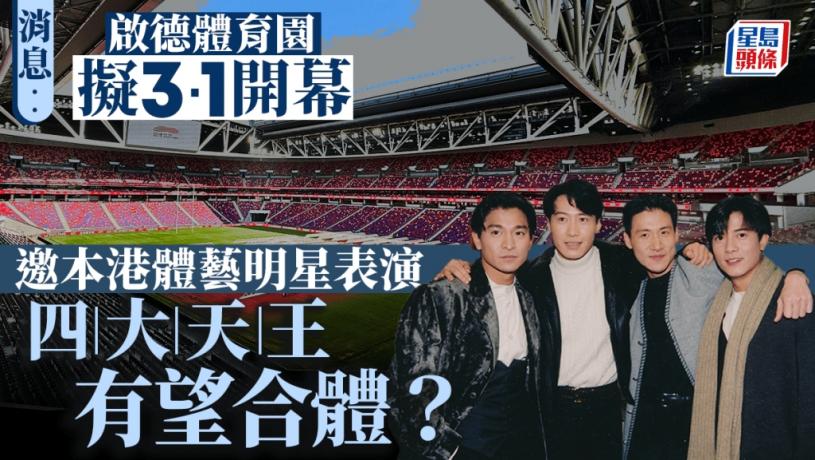 政府早前表示,體育園開幕當日會有盛大儀式,邀請本港體藝明星表演,早前有立法會議員建議邀請「四大天王」演出,剛開完演唱會的劉德華亦表示有興趣,但據聞邀請四人「合體」演出難度不小。