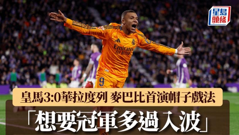 皇家馬德里球星基利安麥巴比於周六西甲延續火熱狀態,首次為皇馬大演帽子戲法,領軍作客3:0大炒華拉度列,個人各賽事於近5場狂轟8球,但直言比起入球更想贏得冠軍。