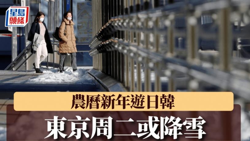 農曆新年臨近,不少人港人會利用假期到日韓旅遊,惟出發前務必留意當地天氣。日本氣象預報,東京市區最快有可能在周二(28日)短暫降雪或出現雨雪交雜的情況,2月1日到4日之間也有可能降雨或降雪。南韓氣象廳則表示,全境周一(27日)凌晨開始降大雪,全北道積雪量最高可達30厘米以上,首爾等首都圈則可能達25厘米以上,降雪最長或持續至29日。