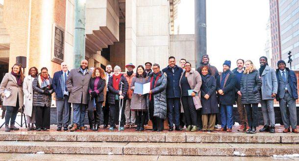 吳弭市長等市府官員在市政廳大樓外與黑人社區領袖合影。 市府提供