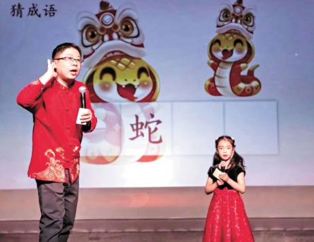 晚會還穿插遊戲和抽獎環節,讓觀眾有參與互動的機會。傳世佳作《千字文》的群體朗誦、短劇《農夫與蛇》和家庭樂隊的表演《中國話》,讓人感受到中華文化之博大精深。陳文婷指導的舞蹈《古麗古麗》、王曉梅指導的小品《英雄》、劉彤指導的四手鋼琴與長笛三重奏也都獲得觀眾熱烈的掌聲。壓軸戲是呂建華、陽光、邵幼平、郭錴、郭石、鄒文靜主唱的《大團圓》。