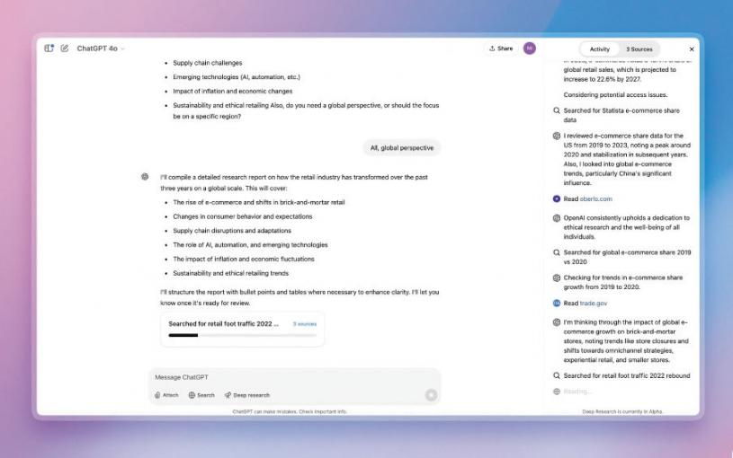 至於限制性,OpenAI表示,ChatGPT 在執行Deep Research時,有時會對事實產生幻覺或做出錯誤推斷,但發生率明顯低於其他現有模型。此外,該模型有時可能難以區分權威資訊與謠言。使用者可能還會注意到一些格式錯誤,「預計隨著使用時間和使用量的增加,所有這些問題都會迅速獲得改善。」