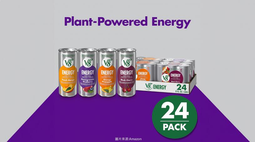 每天都要元氣滿滿!V8 +Energy 能量果汁(24罐)直接讓你精神在線,桃子芒果的熱帶風情、橙鳳梨的酸甜清爽、黑櫻桃的濃郁回甘、石榴藍莓的莓果炸彈,讓味蕾瞬間甦醒!紅茶+綠茶天然咖啡因,每罐 80mg,和主流能量飲料一樣提神,但更健康,無麩質、無人工色素、不含基因改造成分,每罐才 45-50 卡路里,還富含 B 群維生素,輕鬆補充能量不罪惡!早晨代替咖啡醒腦,下午替換碳酸飲料解渴,晚上加點氣泡水或特調變身無酒精雞尾酒,全天候滿電狀態就靠它!