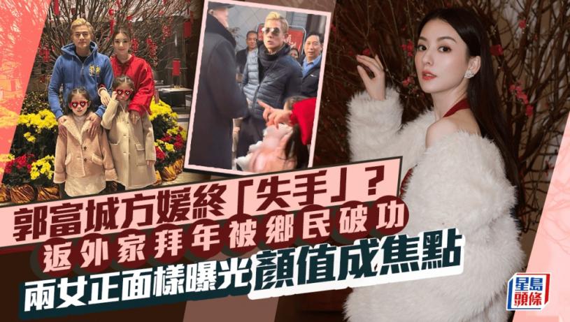 59歲天王郭富城(Aaron)與37歲的內地網紅方媛(Moka)結婚快8年,兩人育有7歲大女Chantelle(郭詠希)與5歲細女Charlotte(郭詠萱),一家四口幸福美滿。農曆新年,郭富城一家前往太太的娘家安徽向外父、外母及親友同鄉拜年,郭富城現身立即引起騷動,被村民瘋狂追捕拍攝,兩名愛女的正面亦被攝入鏡頭內,大女似足媽媽,細女則似爸爸。郭富城夫婦多年來為免女兒樣貌曝光,一直保護得滴水不漏,但此行卻被村民破功!
