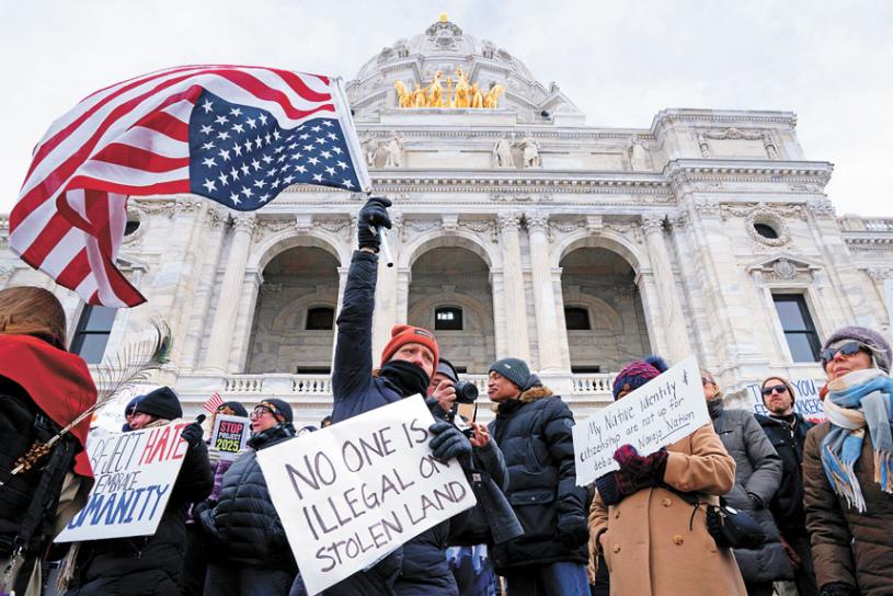 全美10多個州份的民眾響應串連,在家鄉州市的政府大樓外示威,抗議美國總統特朗普推行保守派政策,以及允許億萬富豪馬斯克(Elon Musk)插手國事。遊行人群高舉標語、大喊口號,批評新政府打壓移民和跨性別人士。