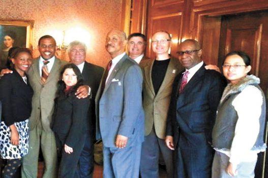 朱寶註冊會計師(右一)和紐約州參議員參加第二屆紐約州註冊會計師協會立法早餐會議。